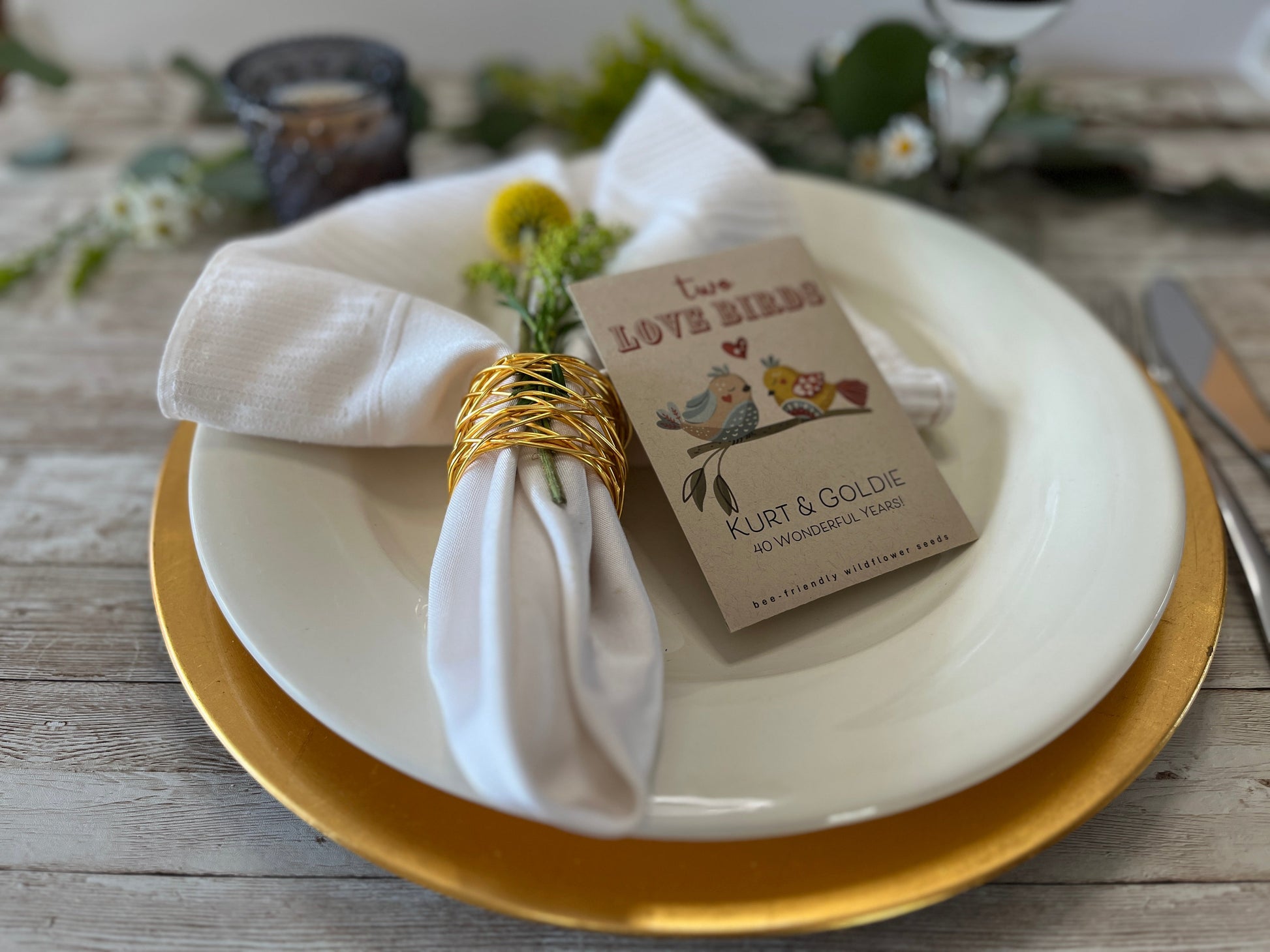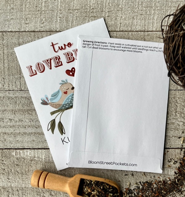 Give guests the gift of gorgeous butterflies with this butterfly garden seed packet. The beautiful butterfly on this packet makes a stunning statement, as well as a lovely favor for your wedding, bridal shower, or birthday party. Also perfect for Earth Day, promotional items, or thank you gifts for customers. Order in bulk for best pricing. Each packet contains about 200-300 non-gmo, open pollinated, bee-friendly wildflower seeds. Our packets are sustainably sourced using green energy and recycled materials.